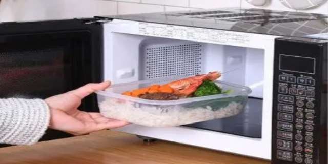 需要特别注意的是,微波炉忌使用一般塑料容器、金属容器或带有金属镶边瓷器、封闭容器。一般塑料容器在微波炉加热中容易发生变形,并释放有毒物质,污染食物,危害人体健康。金属器皿在微波炉加热时会产生电火花反射微波,容易引起火灾危险。封闭容器在微波炉加热时,容器内部因受热产生压力,压力过高容易爆炸。一般盒子都有标注是否适合微波炉使用,有些盒的盖子材料不是PP,因此不能放在微波炉里加热,热饭时,最好不要带盖子。
